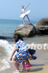 圖:中國(guó)模特在海南作“芭蕾秀”