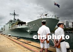 圖:澳軍士兵乘軍艦駛離悉尼港開往波斯灣