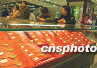 受國際黃金價(jià)格連創(chuàng)新高影響,近日,鄭州各商場的黃金首飾價(jià)格又攀新高,不少柜臺(tái)都標(biāo)到了每克128元,創(chuàng)出幾年未見的高價(jià)格。馬健 攝