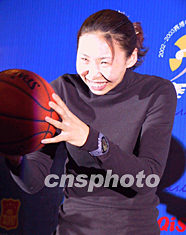 中國籃協(xié)二十七日晚在河北省秦皇島市舉行2002-2003賽博中國女子籃球甲級聯(lián)賽頒獎典禮,運動員苗立杰獲得常規(guī)賽最有價值球員及得分王稱號。作者:廖文靜