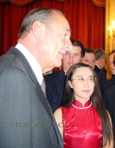 下午五點(diǎn)四十五分左右,希拉克興致勃勃來到招待會(huì)大廳,并對(duì)見到老熟人、中國(guó)駐法大使吳建民感到十分高興。他說,今年是中國(guó)羊年,羊年是一個(gè)吉利的年份。他向法國(guó)的華僑華人致以節(jié)日的祝賀。