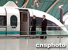 目前,該磁懸浮列車每逢雙休日和公眾節(jié)假日對外開放試運行。今年九月運營線全線開通后,磁浮列車將進行雙線上、下行折返運行,年底正式投入商業(yè)交通運行。預(yù)計二00四年的客運量可達七百萬人次。