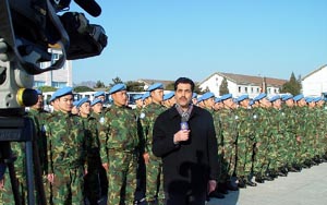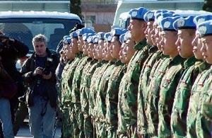 關(guān)于此次中國工兵連赴剛果民主共和國參與維和行動,戴大校介紹說,應聯(lián)合國要求,2002年12月,中國決定向聯(lián)合國剛果民主共和國維和行動第三階段部署派出一個175人的工兵連和一個43人的醫(yī)療分隊。目前各項準備工作已基本就緒,工兵連和醫(yī)療分隊正整裝待發(fā)。他們的主要任務是修筑工路、橋梁,修建機場,維修營房,救治聯(lián)合國維和行動的傷病人員。