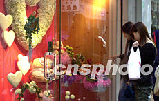 澳門街頭不少商家及時(shí)推出情人節(jié)禮品,為過情人節(jié)的青年人提供豐富商品。作者:李剛