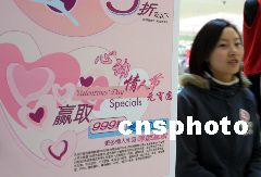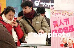 各大超市、商場、禮品店里,正忙著趕傳統(tǒng)春節(jié)“大集”尾聲的精明商家,也同樣沒有放棄對“情人節(jié)”這一絕好商機(jī)的競逐。巧克力、情人卡、鉆石飾物、情侶服飾等各種洋溢著浪漫色彩的禮品琳瑯滿目,且紛紛亮出優(yōu)惠“旗號”來“誘惑”愛河中的男女。