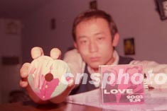 二月十三日夜,北京一名大學(xué)生正在酒吧里展示自己精心制作的情人節(jié)特別禮物--愛意光碟,碟中裝載著自己和心上人的照片、動畫、視頻等內(nèi)容。如今中國的年輕人不再滿足于情人節(jié)送玫瑰、巧克力的傳統(tǒng)方式。作者:俞麗偉