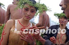 組圖:云南景頗族目瑙縱歌節(jié)上的原始人體彩繪
