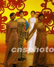 解放軍駐北京某部女戰(zhàn)士在元宵文藝晚會(huì)上進(jìn)行時(shí)裝表演。時(shí)裝表演在解放軍女兵中很流行,這些軍中少女在節(jié)假日里時(shí)常利用報(bào)紙、床單等物品,制成時(shí)裝在軍營中展示美麗。作者:宋吉河