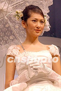 第三十屆情人節(jié)婚紗及結(jié)婚用品展,二月十五日在香港會(huì)展中心舉行。圖為香港名模展示婚紗。錢(qián)興強(qiáng) 攝