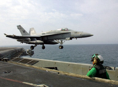 F/A-18“超級(jí)黃蜂”(SuperHornet)艦載多用途超音速戰(zhàn)斗機(jī),由美國(guó)麥克唐納·道格拉斯公司制造,1995年首次飛機(jī),裝備于“林肯”(USS Abraham Lincoln)號(hào)核動(dòng)力航空母艦。
