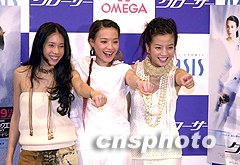 中國大陸及港臺(tái)影星趙薇、舒淇、莫文蔚十七日在東京為她們主演的新影片《夕陽天使》作宣傳,該片將于近期在日本公映。作者:陶光雄