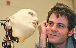 美國得州大學達拉斯分校的博士生大衛(wèi)·漢森是K-bot機器人的發(fā)明者。他利用一種具有24種人造肌肉的導電聚合物雕刻出K-bot的臉,而這些人造肌肉能夠促成面部動作。K-bot機器人的前輩——“安迪”機器人只能表達4種面部表情。