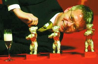 這次中國電影還是有收獲的,張藝謀捧得了“阿爾弗雷德·鮑爾(柏林電影節(jié)創(chuàng)辦人)大獎”。據(jù)透露,《英雄》未捧“熊”,跟本屆評委會主席伊戈揚偏愛人性題材的個人風格頗有關系。另一部由李楊編導描寫中國北方某礦區(qū)一起案件的《盲井》獲藝術貢獻銀熊獎。