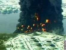 美國(guó)?松凸舅鶎俚倪@座油庫(kù)緊鄰一碼頭。紐約消防部門(mén)提供的信息說(shuō),一艘裝有丙烷的貨船在油庫(kù)附近爆炸起火,火勢(shì)迅速波及油庫(kù)貯油設(shè)施并引發(fā)了第二次爆炸。