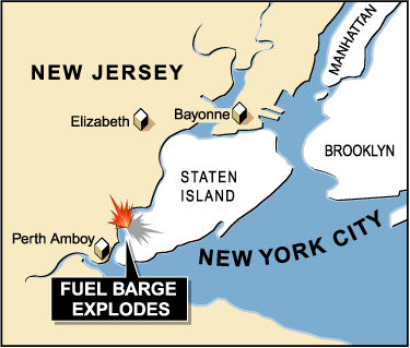 消防官員初步報(bào)告稱(chēng),當(dāng)時(shí)有油輪在搬運(yùn)物品時(shí)因不明原因起火。目擊者稱(chēng),巨大的爆炸聲很遠(yuǎn)就能聽(tīng)到,濃煙在紐約市中心曼哈頓地區(qū)都可以看到。