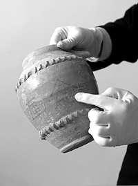 文物專家介紹,雖然文物經(jīng)濟(jì)價值并不是很高,但很有研究價值,其中一些在津京地區(qū)的文物市場上沒有見過。記者在現(xiàn)場了解到,年代屬新石器晚期時代———夏家店下層的就有四件,它們是四個陶鬲,專家介紹,它們能反映當(dāng)時的手工業(yè)發(fā)展情況;此外在南北朝的青釉堆紋罐中,有一件上刻有“褐彩‘倉庫’銘”,研究人員可從這上面了解南北朝的生產(chǎn)及生活狀況,這批文物中有研究價值的還有很多。