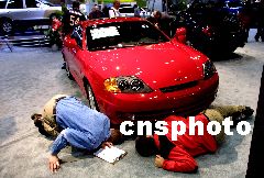 一年一度的美國(guó)芝加哥車(chē)展正在展覽中心舉行,數(shù)十家世界著名汽車(chē)制造商的一千多件展品登臺(tái)亮相,圖為本田汽車(chē)展臺(tái)前,參觀者和推銷(xiāo)員一起對(duì)最新問(wèn)世的轎車(chē)上下打量,仔細(xì)研究。作者:王瑤