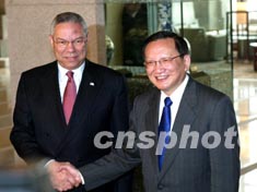 鮑威爾說(shuō),美中關(guān)系近一年多來(lái)取得很大進(jìn)展,雙方在高層對(duì)話(huà)、人員交往、反恐、經(jīng)貿(mào)等領(lǐng)域進(jìn)行了很好的合作。切尼副總統(tǒng)期待著不久訪問(wèn)中國(guó)。美方希望進(jìn)一步加強(qiáng)與中國(guó)的合作關(guān)系,美方意識(shí)到臺(tái)灣問(wèn)題對(duì)中國(guó)的重要性,美方將堅(jiān)持一個(gè)中國(guó)的政策,遵守美中三個(gè)聯(lián)合公報(bào),不支持任何搞“臺(tái)灣獨(dú)立”的活動(dòng)。