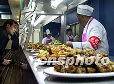 餐廳的服務(wù)人員說(shuō),今天的飯菜有300多種,和平時(shí)一樣多。