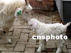 2月26日9時28分,在西北農林科技大學種羊場,世界首批成年體細胞克隆山羊“陽陽”2001年8月8日所產(chǎn)的龍鳳胎中的女兒“慶慶”順利產(chǎn)下一只母羊,取名“甜甜”,出生時體重2.8千克,現(xiàn)在已能歡蹦亂跳!疤鹛稹钡某錾C明中國的體細胞克隆山羊不但自己繁育能力正常,后代繁育也沒問題。劉庚軍 攝
