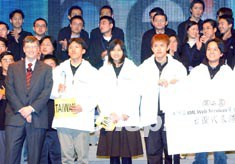 比爾·蓋茨為參加亞太區(qū).net開(kāi)發(fā)大賽獲獎(jiǎng)的代表隊(duì)頒獎(jiǎng)