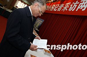 全國“兩會”新聞中心的工作人員為中外記者準備了《中國人民代表大會制度》中英文讀本,受到中外記者的歡迎。作者:盛佳鵬