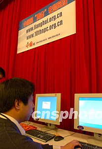 北京一家網(wǎng)絡(luò)媒體在“兩會”新聞中心安裝終端展示平臺,供中外記者查詢?yōu)g覽“兩會”信息。作者:張煒