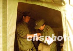 圖:軍中情侶相逢新疆地震災區(qū)