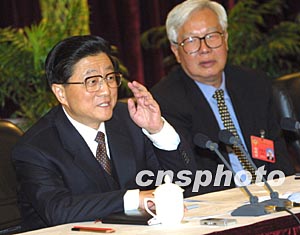 三月四日下午,中共中央政治局常委黃菊在北京看望出席全國(guó)政協(xié)十屆一次會(huì)議的科協(xié)、科技屆委員,并參加了聯(lián)組討論。作者:史利