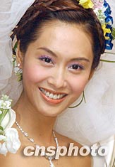 香港藝員朱茵三月四日在香港“現(xiàn)代經(jīng)典”影樓拍攝主題為“花團(tuán)錦簇”的婚紗晚裝。錢興強(qiáng) 攝