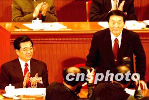 中國(guó)總理朱镕基三月五日向十屆全國(guó)人大一次會(huì)議作完《政府工作報(bào)告》后,面對(duì)代表們長(zhǎng)時(shí)間的鼓掌起立致謝。作者:賈國(guó)榮