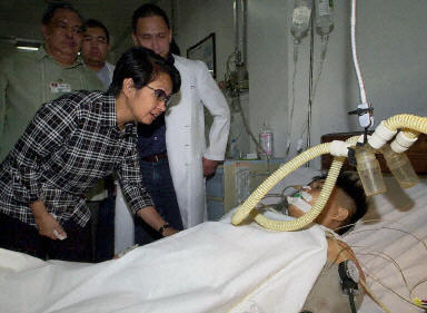 圖:菲律賓總統(tǒng)阿羅約看望爆炸事件受傷人員