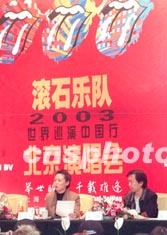 英國世界級搖滾巨星、40年經(jīng)久不衰的“滾石樂隊”,將于2003年4月1日和4日在上海、北京舉行大型演唱會。中國搖滾音樂歌手崔健(右),六日在北京宣布將協(xié)同演出。作者:鄒憲