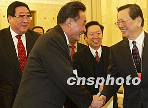 在香港代表團,吳邦國在認真聽取代表發(fā)言后說,香港回歸祖國后,經(jīng)濟社會穩(wěn)定!耙粐鴥芍啤狈结樖钦_的,具有強大的生命力。我們將繼續(xù)堅定不移地實行這一方針,嚴格按照基本法辦事,全力支持香港特別行政區(qū)行政長官和政府的工作,廣泛團結(jié)香港各界人士,積極促進內(nèi)地與香港在經(jīng)貿(mào)、教育、科技、文化等領(lǐng)域的交流與合作,共同維護和促進香港的繁榮、穩(wěn)定和發(fā)展。
