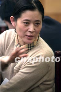 全國政協(xié)委員、電視主持人倪萍在七日的分組討論會上呼吁關(guān)注農(nóng)村普教問題,對貧困山區(qū)發(fā)放“教育券”來保障教育資金的專款專用。作者:廖文靜