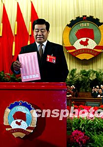 九屆全國政協(xié)主席李瑞環(huán)也到會(huì)祝賀新一屆政協(xié)常委會(huì)的產(chǎn)生。