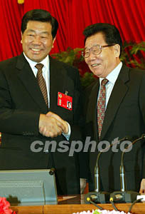 組圖:李瑞環(huán)祝賀賈慶林當(dāng)選全國(guó)政協(xié)主席