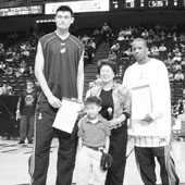 據(jù)《美中晚報(bào)》報(bào)道,家住休斯頓地區(qū)的黃朱惠愛女士對獲得這項(xiàng)任務(wù)感到十分榮幸,因?yàn)樽詮囊γ鳟?dāng)選為NBA狀元秀后,她也一直與火箭隊(duì)和李布朗市長等方面一道,為姚明最終加盟火箭隊(duì)做出了很大的努力。在去年7月火箭隊(duì)專門為吸引姚明來休斯頓所錄制的專題錄象片中,就有黃朱惠愛女士熱情呼喚姚明加盟火箭隊(duì)的講話鏡頭。