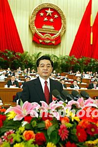 胡錦濤說,新一屆國(guó)家機(jī)構(gòu)工作人員是在國(guó)際形勢(shì)復(fù)雜多變、國(guó)內(nèi)建設(shè)任務(wù)艱巨繁重的新形勢(shì)下?lián)?fù)重任的,為了履行好人民賦予的神圣職責(zé),我們一定努力做到: