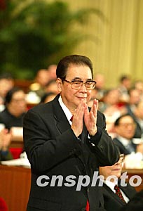 圖:李鵬向代表致意