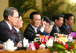 圖:溫家寶和副總理們一起與記者見面