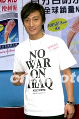 圖:方力申身穿印有NO WAR ON IRAQ字樣的T恤