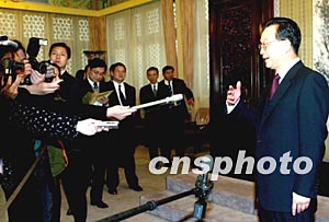 國(guó)務(wù)院總理溫家寶十九日在北京會(huì)見(jiàn)香港特別行政區(qū)行政長(zhǎng)官董建華時(shí)對(duì)香港記者表示,香港一定會(huì)走出目前的困境。作者:鄭萍萍