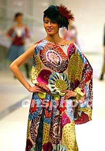 香港時裝精選《今夜星光燦爛》二十四日晚在北京中國大飯店舉行,張路路等十一位香港著名設(shè)計(jì)師的作品集體亮相,為二零零三年中國國際時裝周首日表演增添絢麗色彩。香港著名演藝明星梁詠琪參加表演為時裝周助興。作者:毛建軍