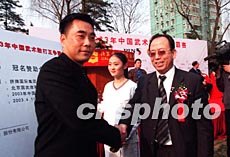 香港拼牌集團(tuán)服飾公司二十五日在北京舉行2003年中國散打王爭霸賽冠名儀式,以進(jìn)一步開發(fā)中國大陸服裝市場。圖為公司董事長柯夏鳴先生(左)與主辦單位代表揚富年先生在簽約儀式上。作者:武仲林