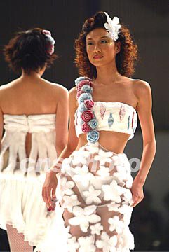 香港皮草服飾二十五日晚在北京舉行的中國國際時裝周上亮相,模特展示設計考究、做工精美的2003香港新款皮草。作者:毛建軍