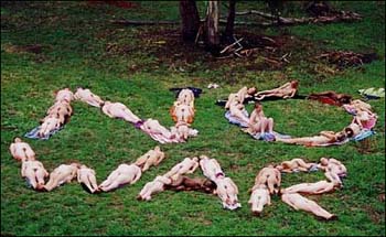 中新網(wǎng)3月27日電 據(jù)國際在線報(bào)道,當(dāng)?shù)貢r(shí)間3月25日,在澳大利亞亞塔斯馬尼亞島東南岸港口城市霍巴特。35名婦女全裸在曠野擺出“NO WAR(不要戰(zhàn)爭)”的字樣反對澳大利亞政府支持美英聯(lián)軍對伊發(fā)動(dòng)戰(zhàn)爭。