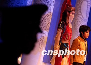 北京飯店的保安護衛(wèi)著三月末在此間舉行的國際青年時裝師大賽,來自摩洛哥的學生正在展示她設計的迷人中東風情時裝。作者:賈國榮