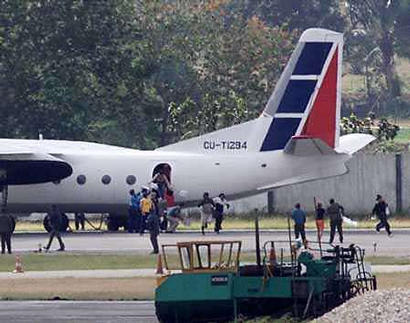 古巴一架安東洛甫-24型客機(jī)1日被劫持,劫機(jī)犯手持兩枚手榴彈。該客機(jī)在哈瓦那的一個(gè)機(jī)場上停留了超過12小時(shí)之久。在期間,該客機(jī)曾經(jīng)獲得燃料和食品飲料補(bǔ)給。