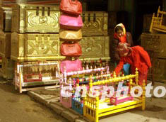 新疆喀什市街頭一對(duì)維吾爾族母女日前在家具攤點(diǎn)選擇兒童床。春季的喀什街頭各式民族特色鮮明的家具在街頭熱賣。作者:宋吉河